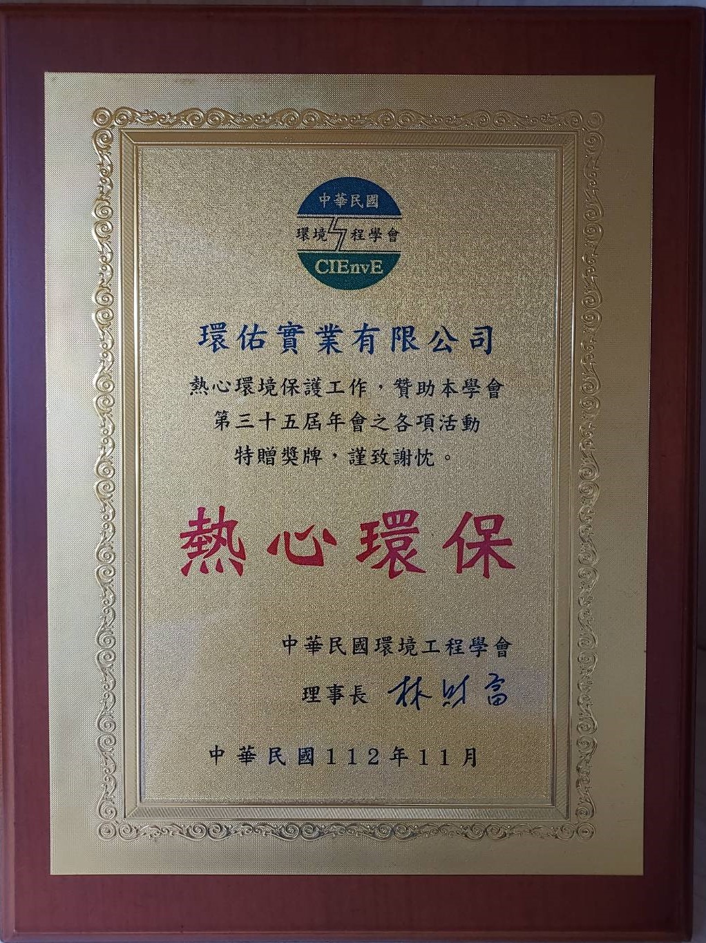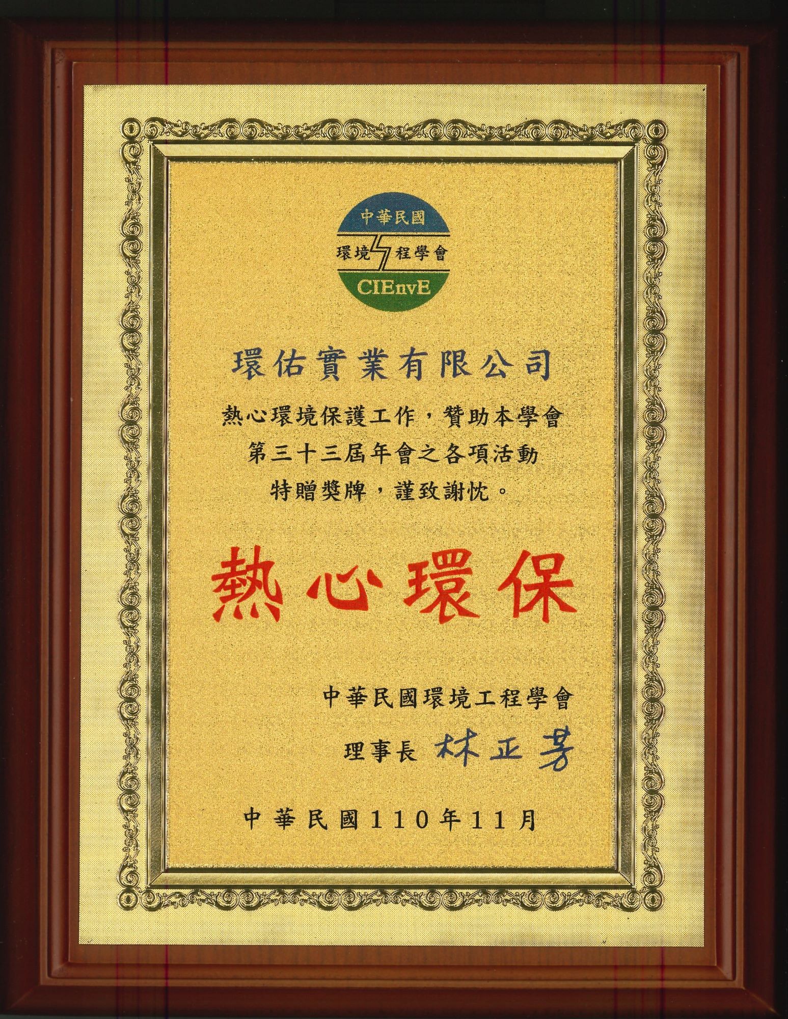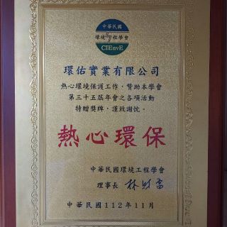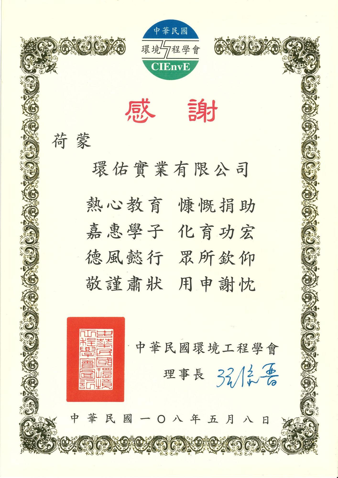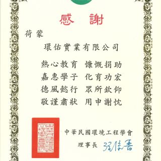 中華民國環境工程學會感謝狀